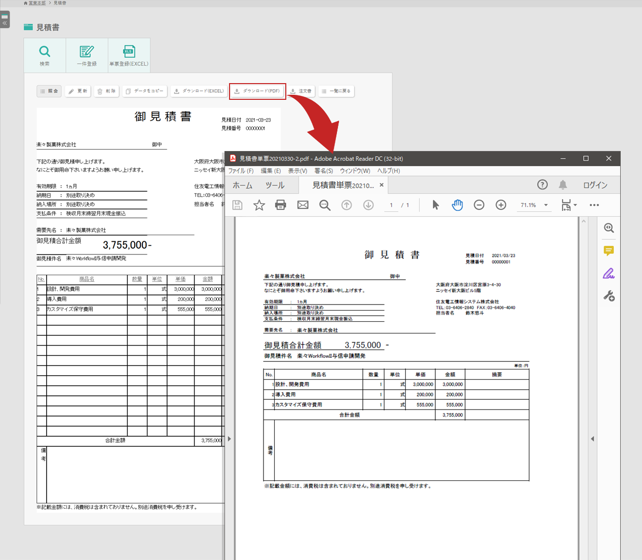Excelファイルを元にアプリを開発できるツールです。注文情報や製品情報を確認できるアプリを構築する際、SAPから連携されたデータを各業務に合わせて加工・マージし、テンプレート機能で視覚的に分かりやすく閲覧できます。また、データをExcelフォーマットに出力して、集計や分析に活用できるため、業務効率化とデータ活用を支援します。