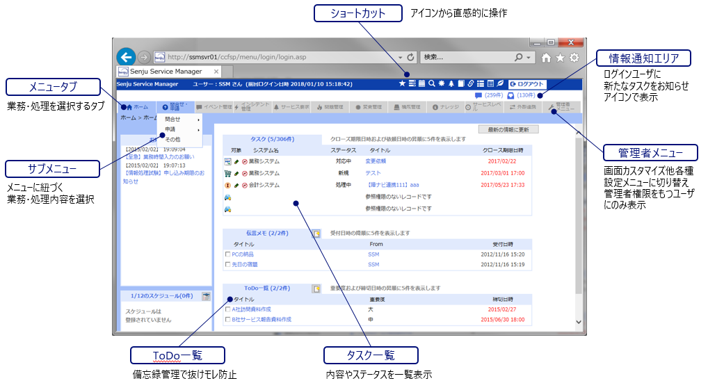 ITILやISO20000(ITSMS)でもとめられる運用プロセスを効率的に実現します。おかげさまで国内シェアNo.1、多種多様な導入実績にて培ったノウハウが集約されています。クラウド型なので、スモールスタートで継続的に運用改善を実現します。