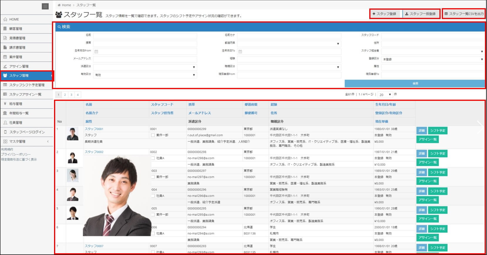 jobsは、中小企業をターゲットにして作られた、人材管理のシステムです。実際の中小企業派遣会社と共に開発を進めたので、中小企業の業務フローに忠実なデザイン設計になっています。派遣の管理を人の手で行うと煩雑で多くの時間と労力を取られてしまいますが、そんな問題を一挙に解決してくれるのが、このjobsです。使い勝手が良く、難しい操作が一切必要ないのも特徴です。