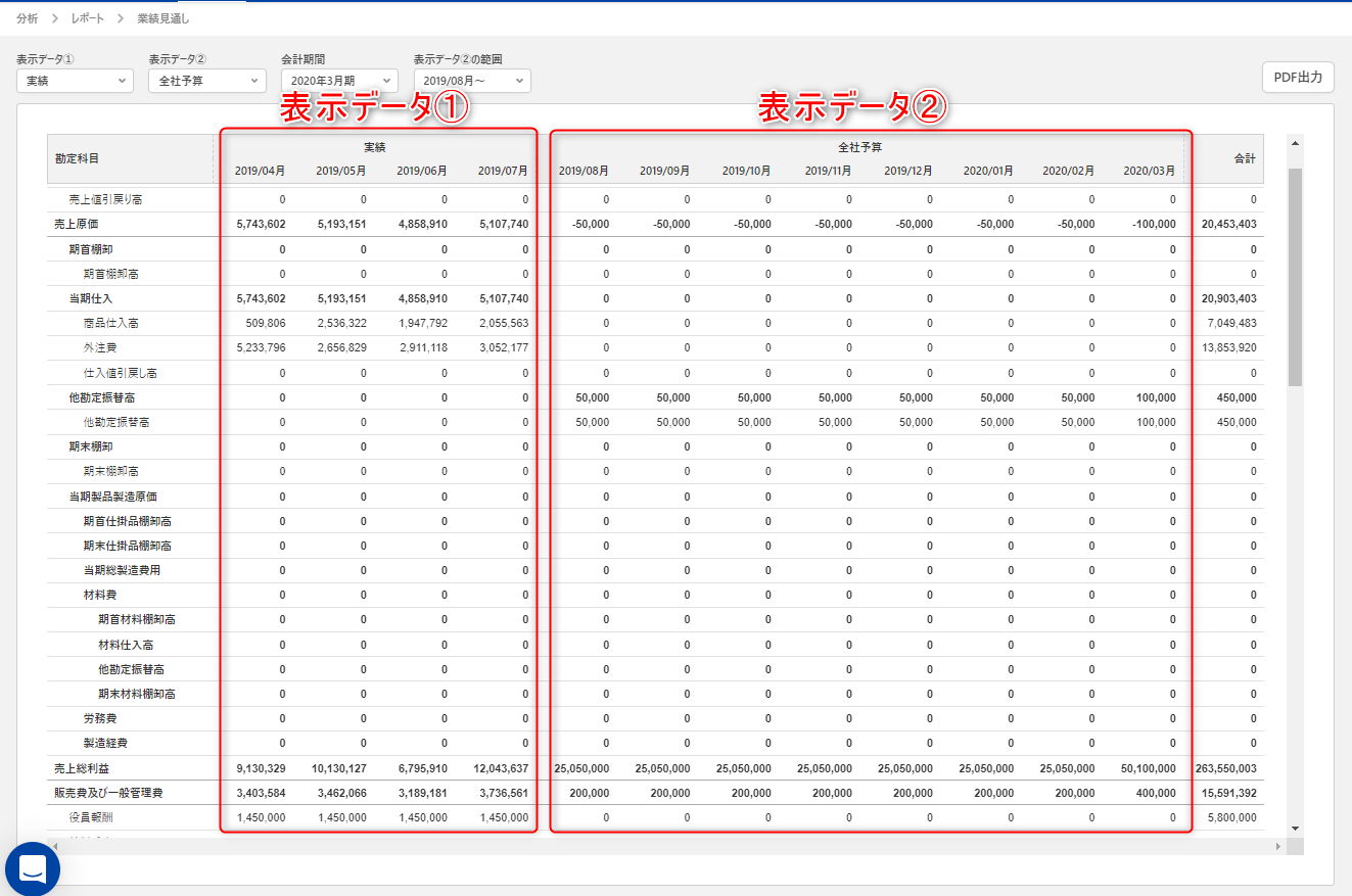 予実管理のための実績データを会計システムから取り込むのが簡単で非常に便利。