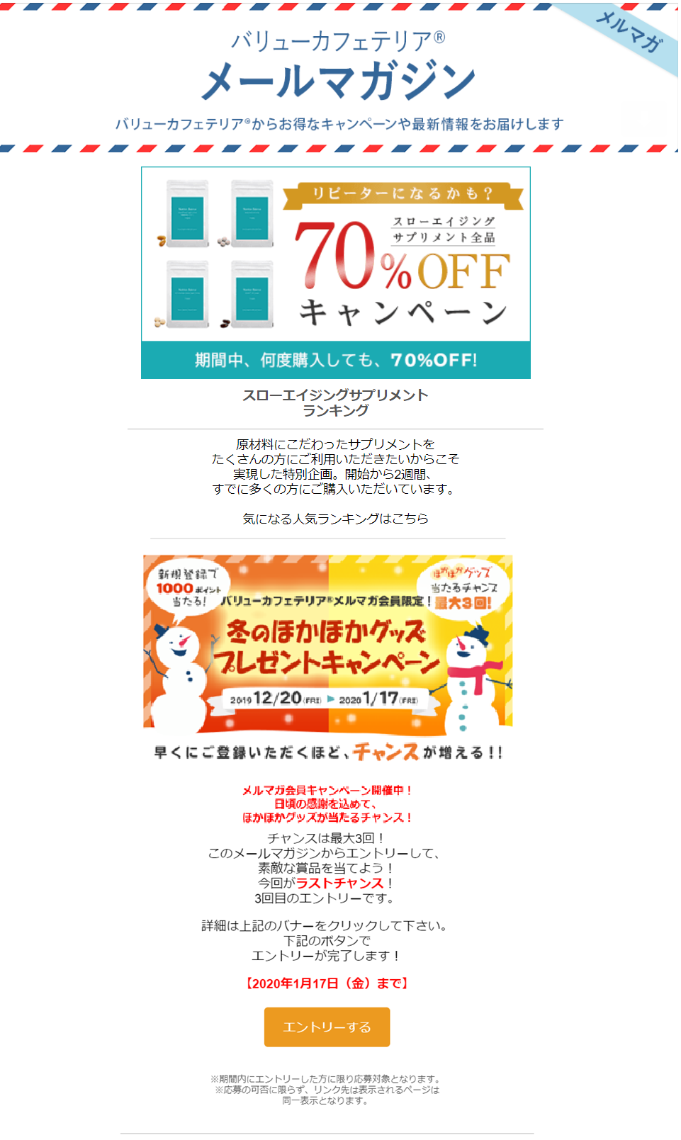 バリューHRの健診予約システムで予約し、健康診断を受診しすれば、翌年度にポイントが付与され様々な商品、サービスに交換することができる。ラインナップは割りと充実しており何らかの商品、サービスが見つかる。