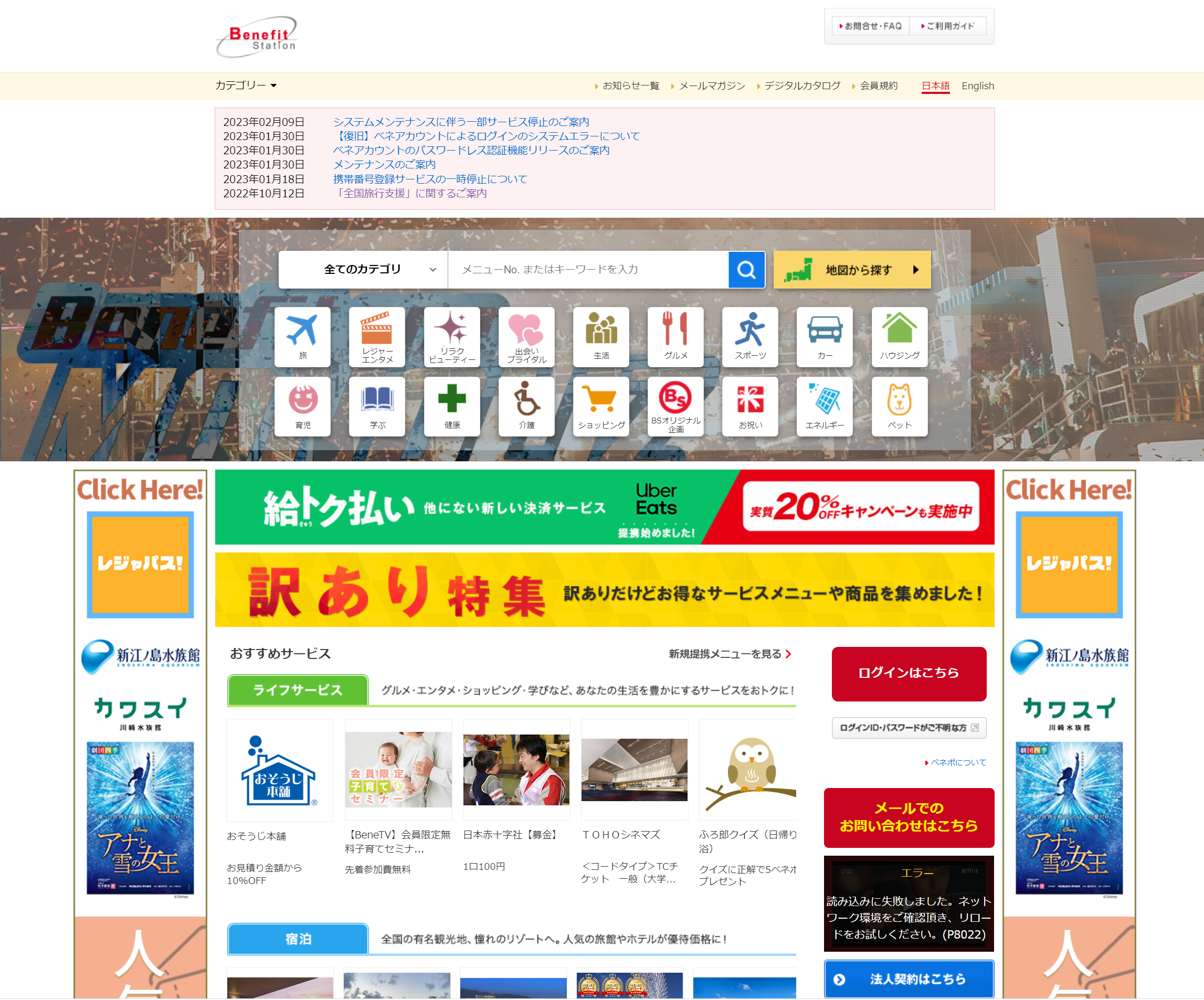 一見使えなさそうなクーポンサービスと同じように見えるが、多くのサービスで通常のクーポンよりも割引率が高い。人気のサマーランドなど他のサービスでは200円程度しか安くならないのに、ベネフィットステーションは1100円も安くなる。5人家族がなら5000円ほど安くなるので、場内の高い飲食代もかなり助かるようなレベルだ。他にも多数割引があるので、こまめに見るとお得が沢山ある。