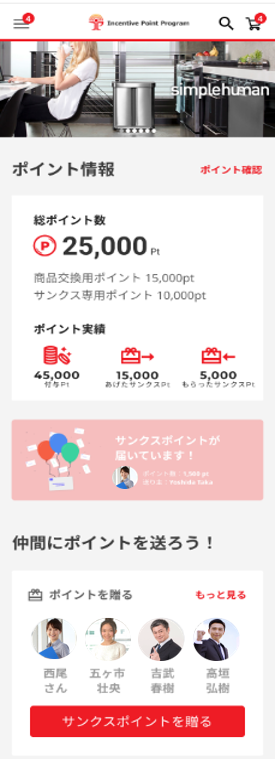 インセンティブ・ポイントの画面/UI