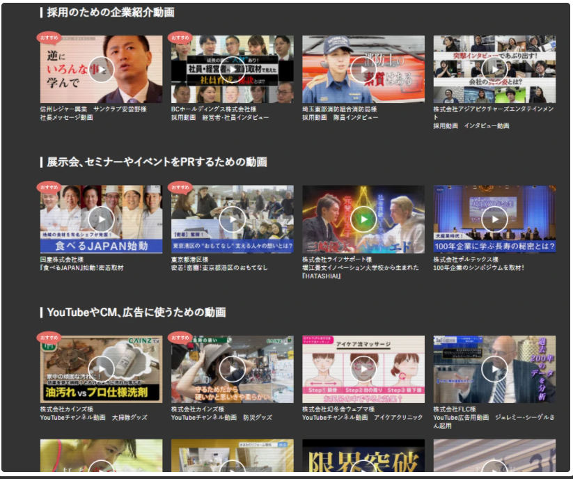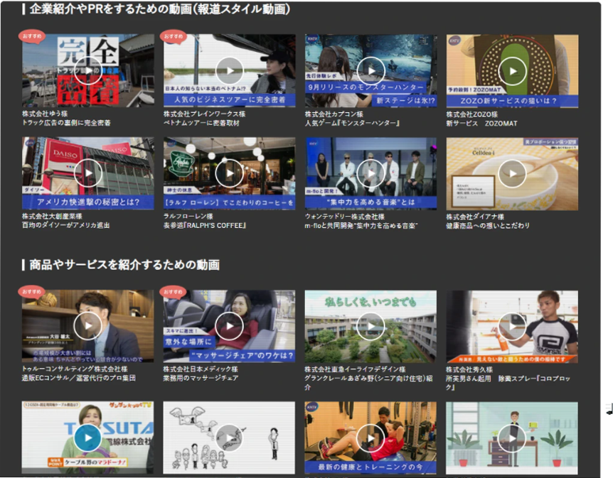 | 企業向け動画 | 大衆向け動画 | ||
