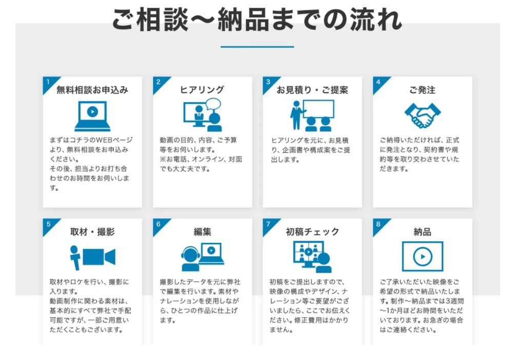 無料相談を行っていますので、「どんな動画を作れば良いかわからない」「この予算でこんな動画は制作できる?」など、動画に関することならお気軽にご相談ください!