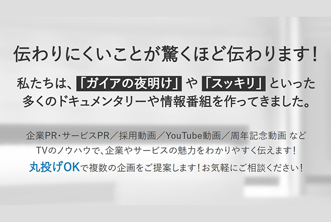 ・ドキュメンタリーのような企業紹介動画を作って、自社のファンになってもらいたい!