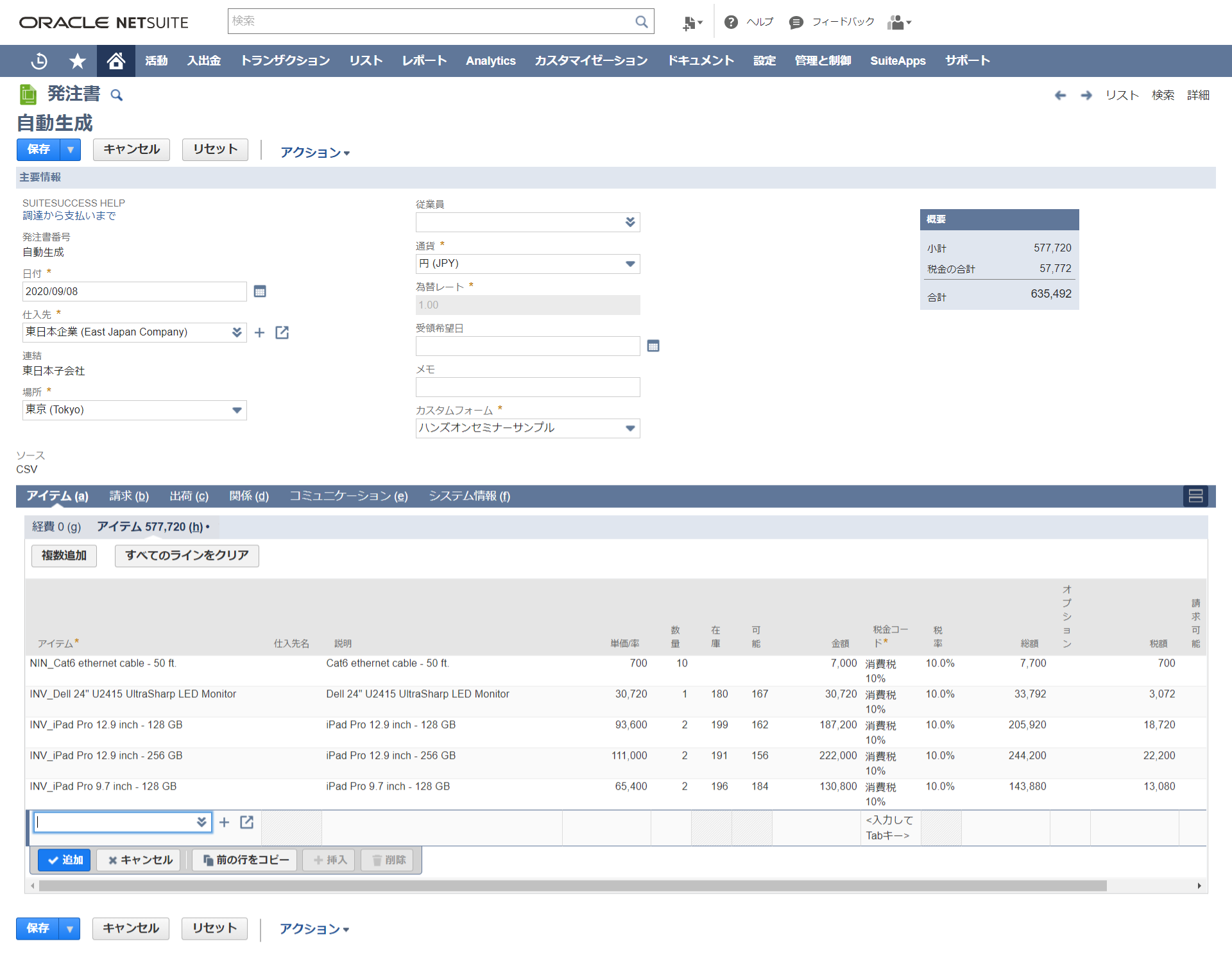 Oracle NetSuiteの購買管理機能では、ベンダー情報や調達データを一元化し、購買担当者が品目別の価格や納期情報を容易に把握できます。これにより、規模の経済を活用した有利な条件での契約交渉が可能です。