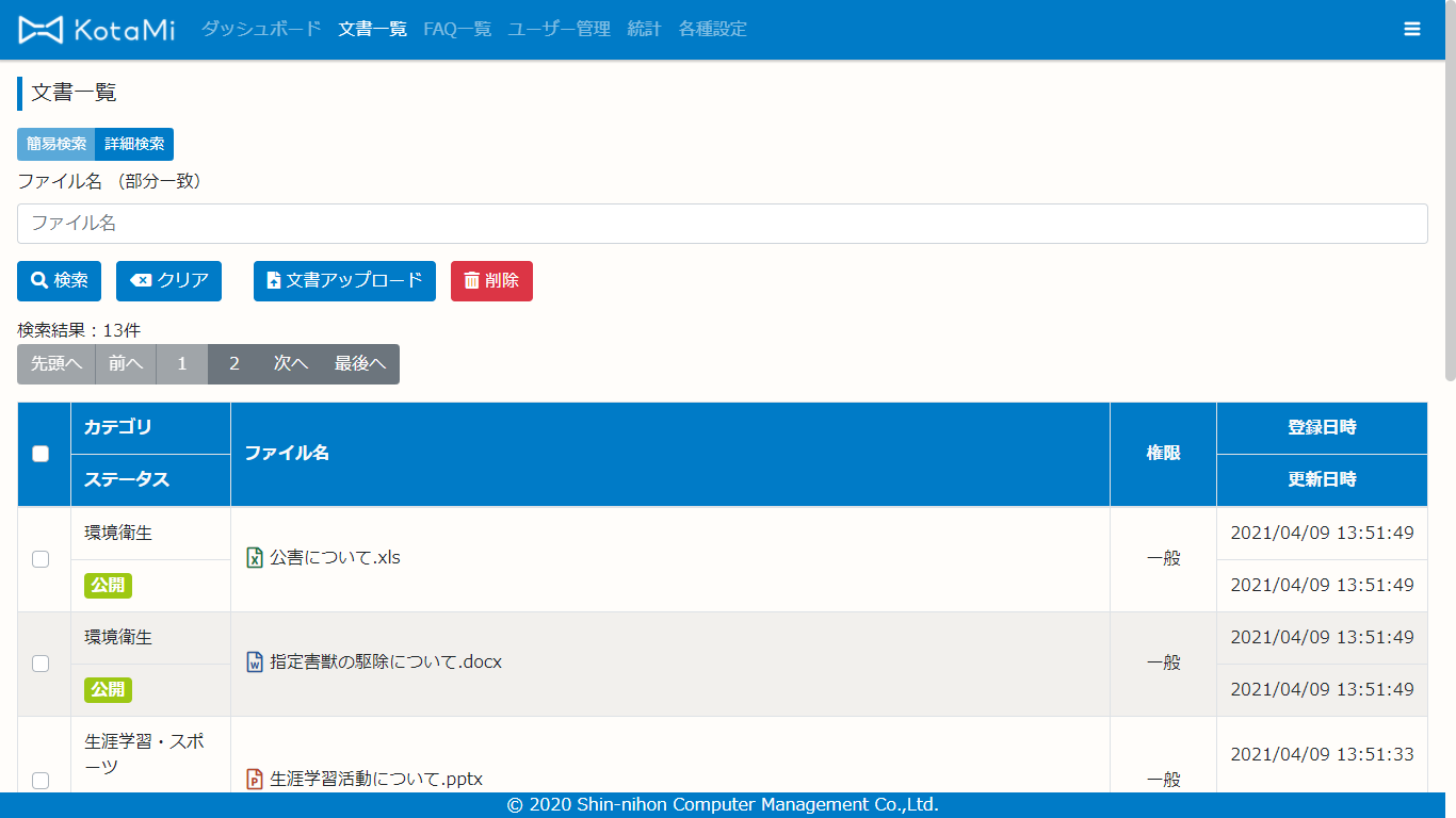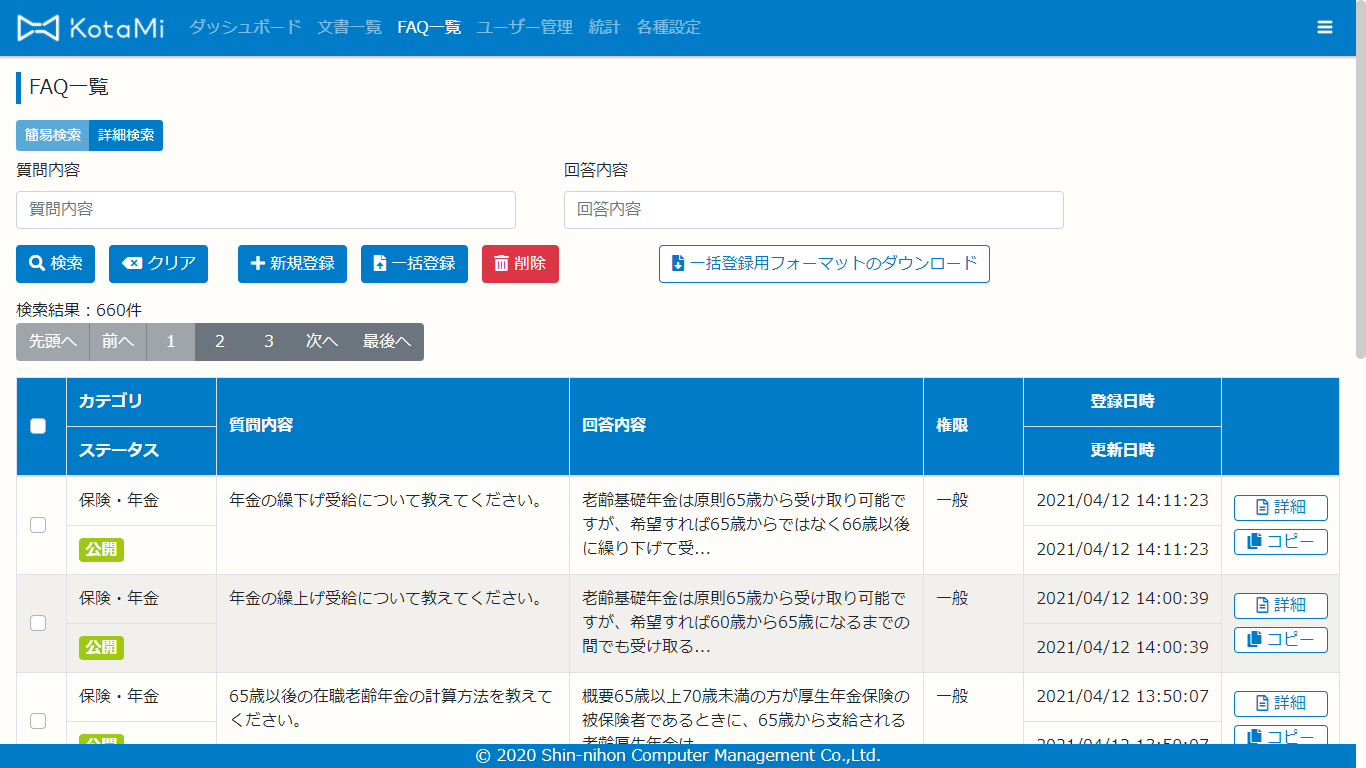 - ご要望に応じて、FAQ・文書の登録代行をいたします。詳細は、お問い合わせください。