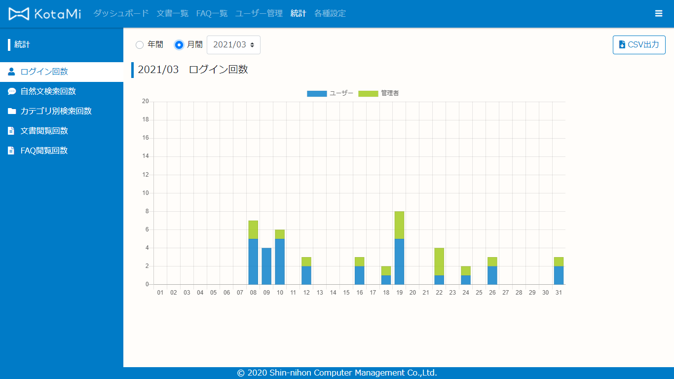 - FAQ・文書1,000件までのプラン(年間契約)です。1,000件超の場合は、お問い合わせください。