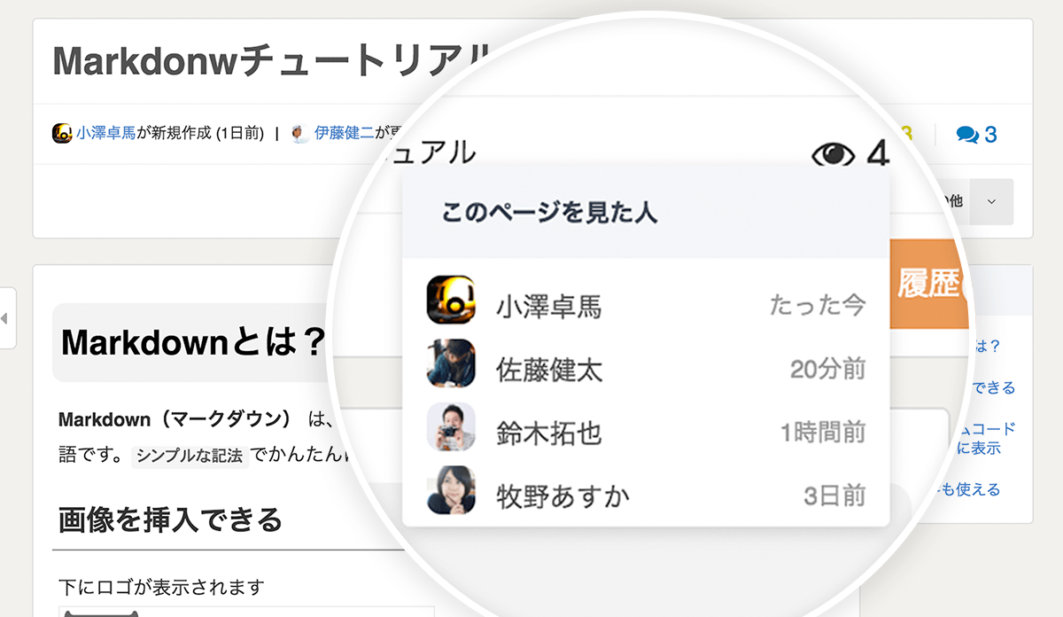 ・ナレッジを記事にする際、画像をクリップボードから直接貼り付けでき、そこに赤枠や文字を入れられる。そのため、いちいち他アプリで画像編集しなくてもいいのが楽…など、便利機能が複数搭載されている。