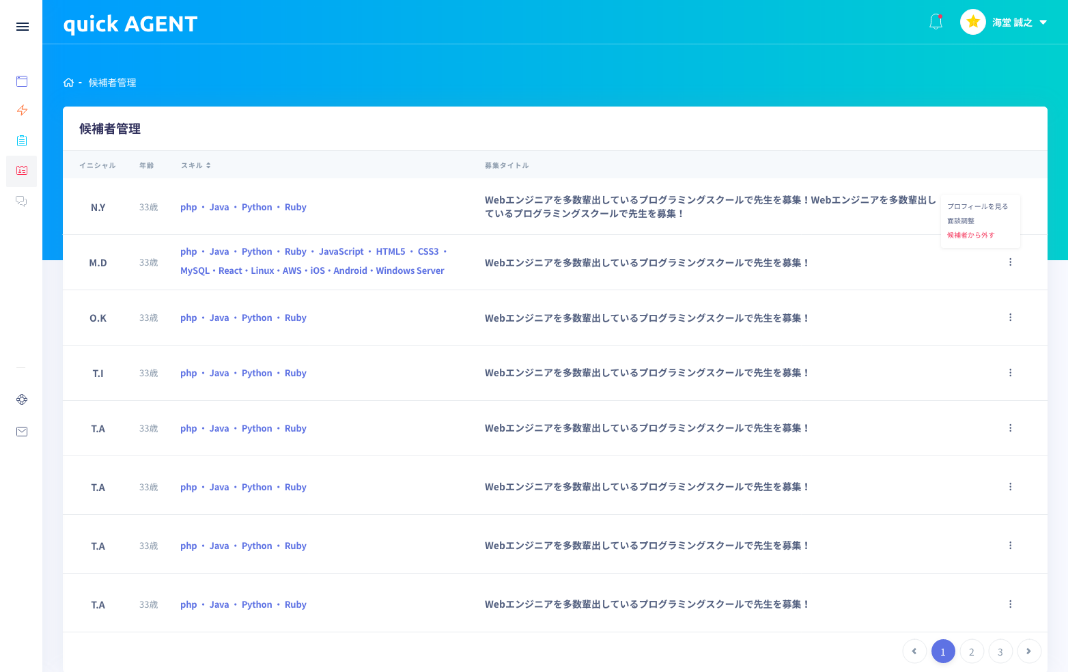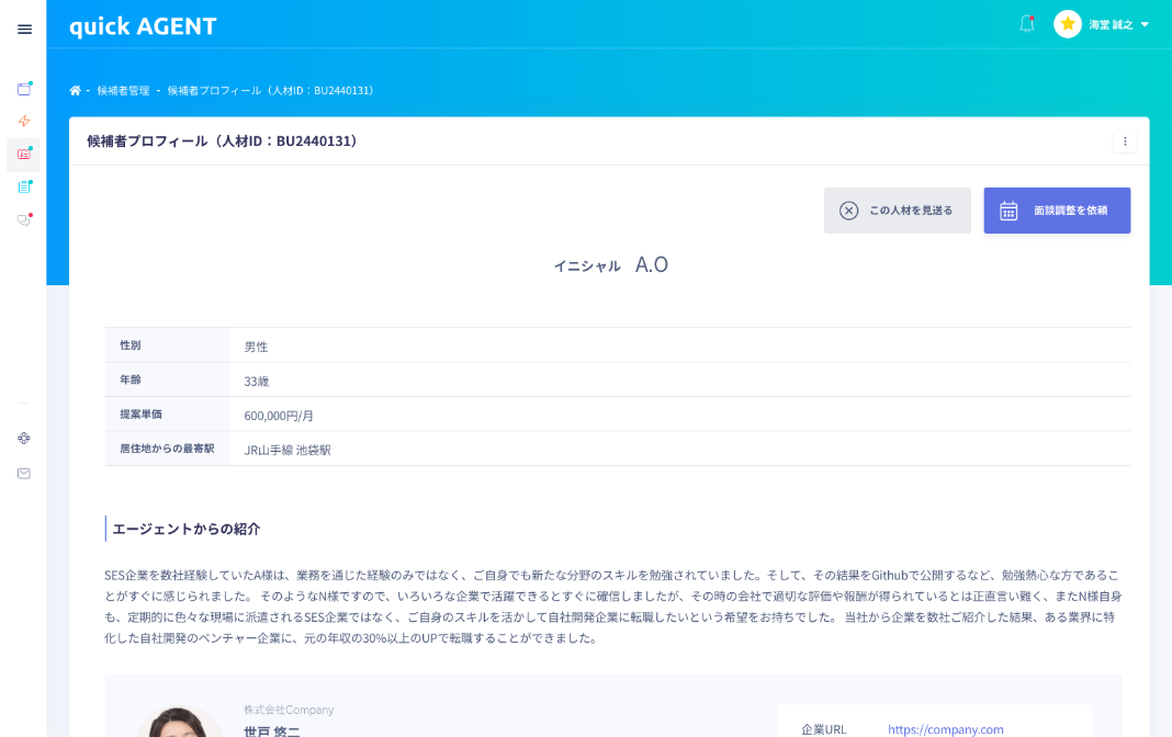 また複数のエージェントに依頼するため、募集が難しい要件でも人材を見つけやすくなります。さらに、エージェントとはクイックエージェント内のチャットを通して連絡が取り合えるので、コミュニケーションコストの削減にも役立ちます。