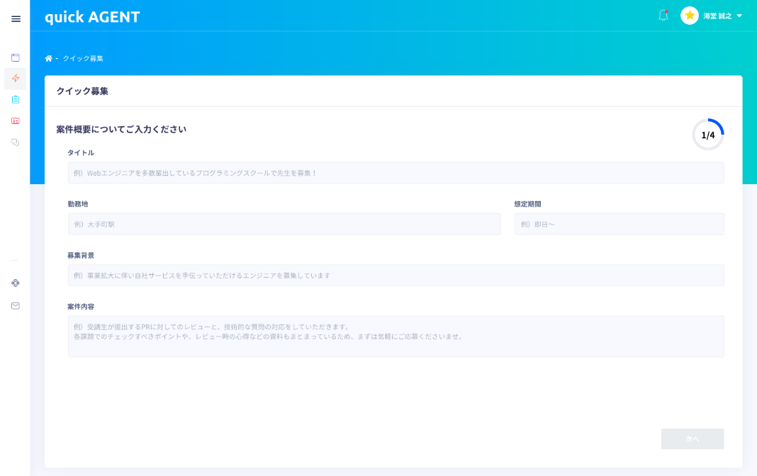 クイックエージェントは、エンジニアの業務委託募集を多数のエージェントに一括依頼できるサービスです。「今必要なエンジニア」を、手間なくスピーディに集めることが可能です。
