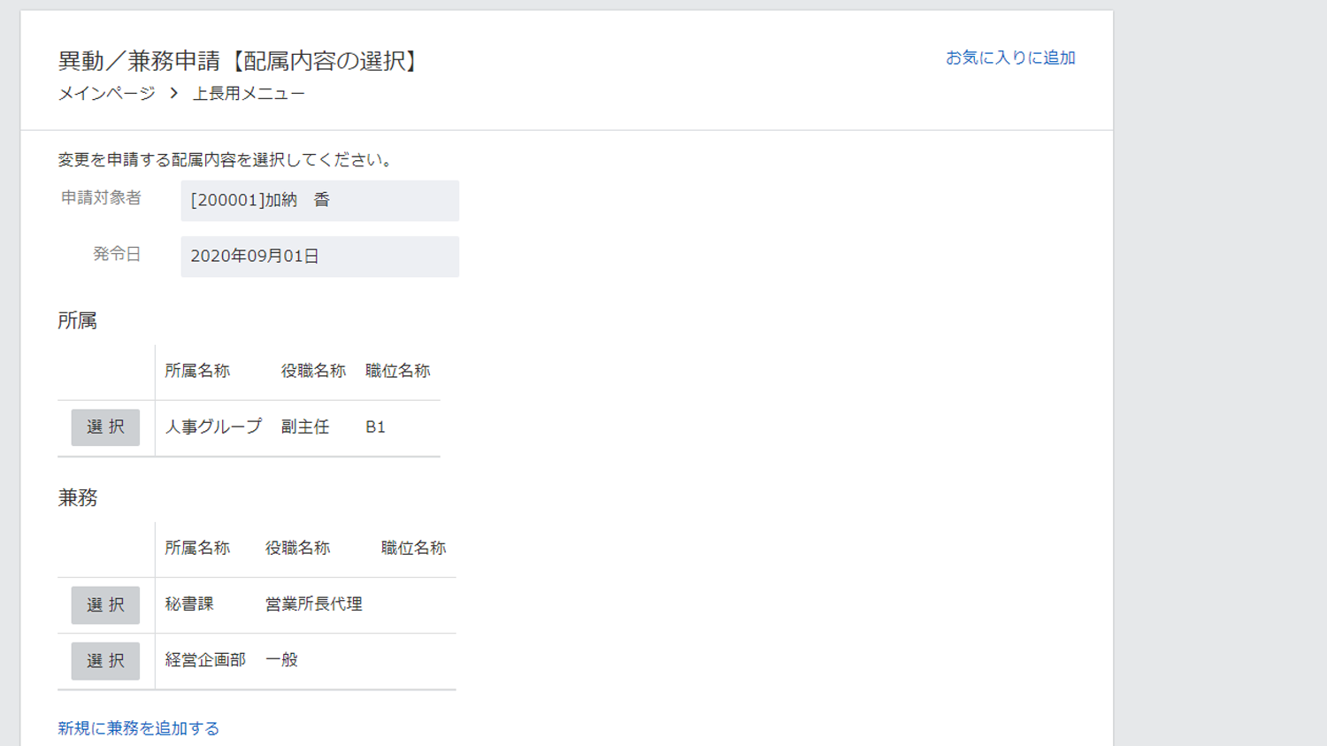 雇用・異動・兼務・転籍・昇格・登用・出向・休職・退職・再雇用といった多様な発令業務に標準対応