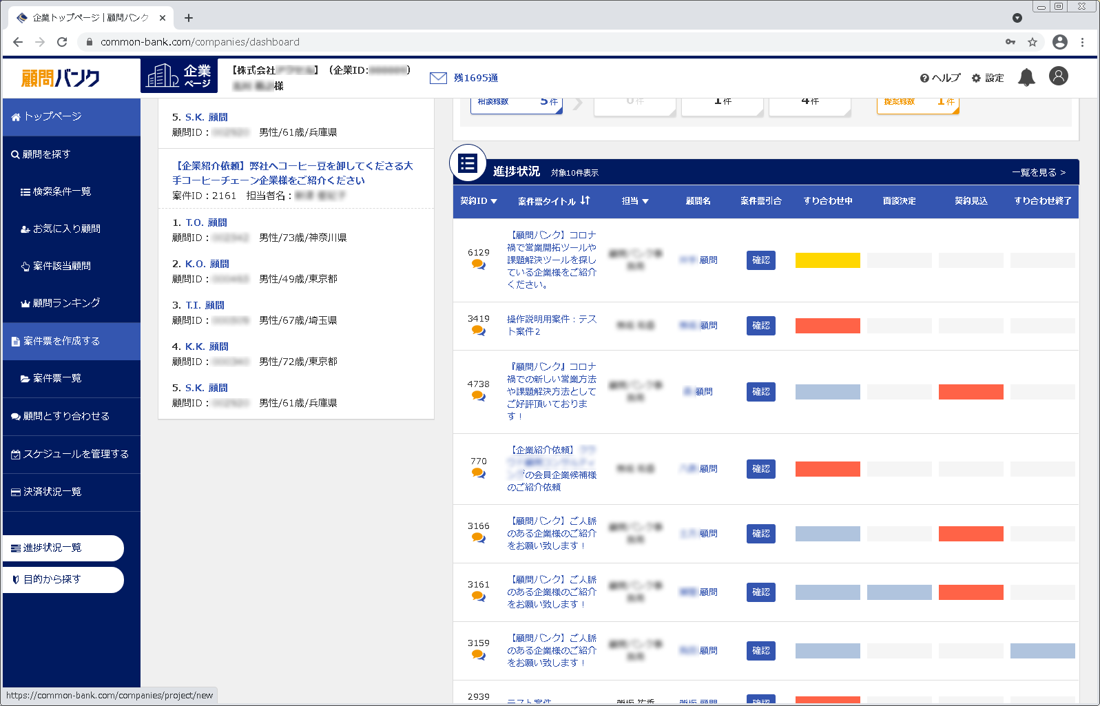 ID発行数:3ID 案件公開数:3件 案件相談数:100通/月