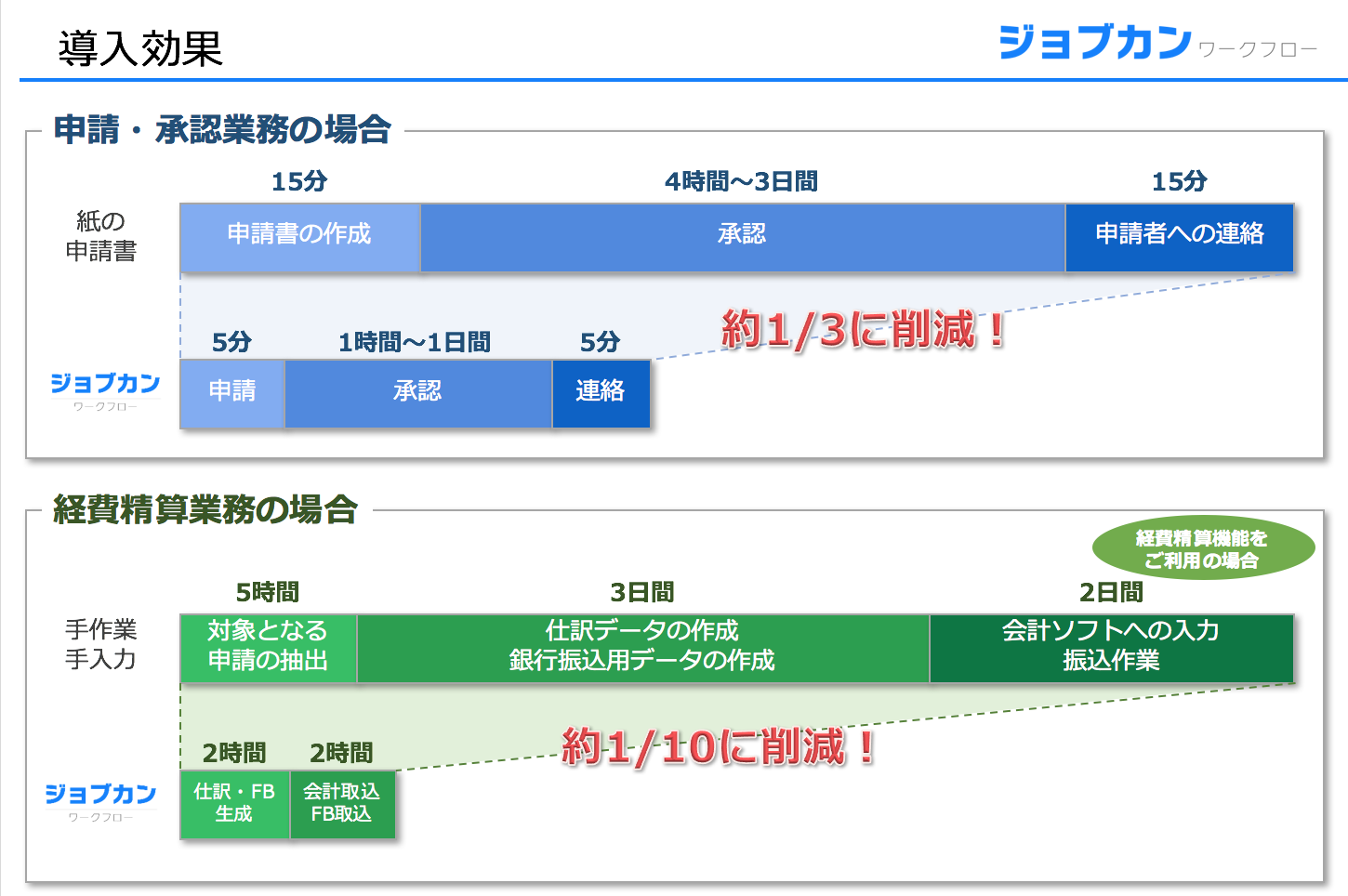 申請から承認までのフローがスムーズになり、作業時間の大幅な短縮が可能になります。直感的な操作画面により迅速に使い方を習得できるため、導入時のトラブルを最小限に抑えられます。また、申請や承認の記録が明確に残るため、後から確認や監査が容易になり、透明性の高いワークフローが実現します。