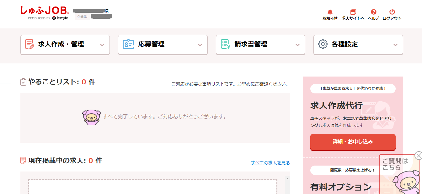 管理サイトでは求人の修正・掲載はもちろん、応募者対応も可能。請求書発行も確認できます。 またATS連携も備わっているため、複数媒体を一括管理したい企業様にもおすすめです。