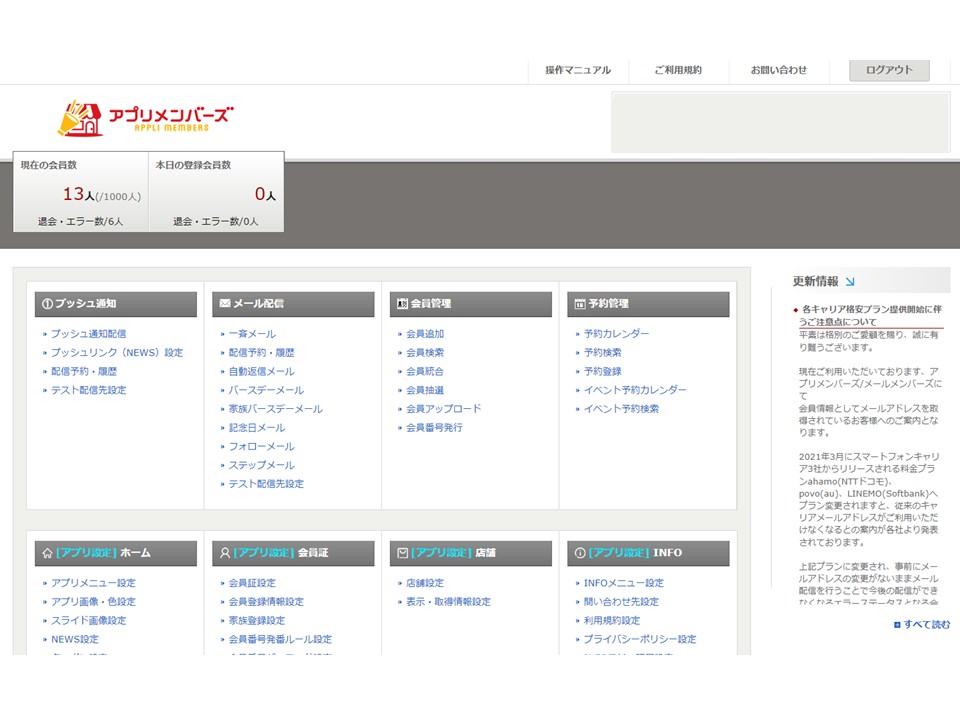 ・プッシュ通知機能でオリジナルアプリをダウンロードしている方へメッセージを送ることが可能です。