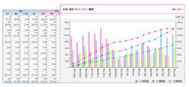 新卒、キャリアともに選考の進捗状況が表で見れるので便利。合格、不合格はもちろん、面接未予約者、辞退者等もリアルタイム確認できるため、チーム間での進捗共有がしやすい。