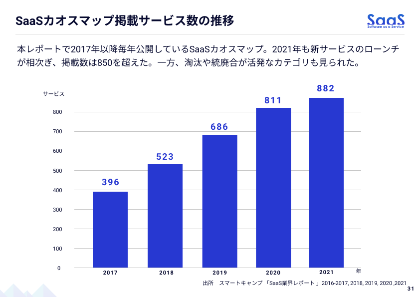 【公開終了】SaaS業界レポートは、SaaS活用の促進を目的として、SaaSの市場規模や最新トレンドをスマートキャンプ株式会社がまとめたレポートです。累計ダウンロード数1万5,000件以上。