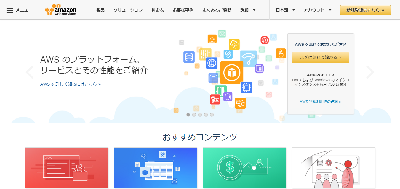 Amazon Web Services(AWS)は世界の100万人以上のユーザーが利用するクラウドプラットフォームサービスです。高セキュリティ・堅牢なクラウド環境を手軽に利用できるほか、多数の機能が装備されているのでさまざまなニーズにあわせたワークロードを構築できます。使った分だけ支払う従量課金だからコストに無駄がありません。