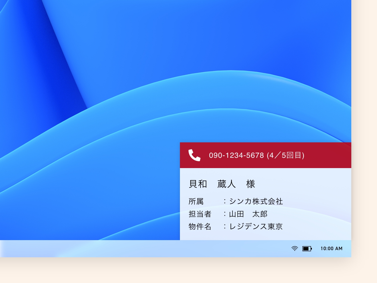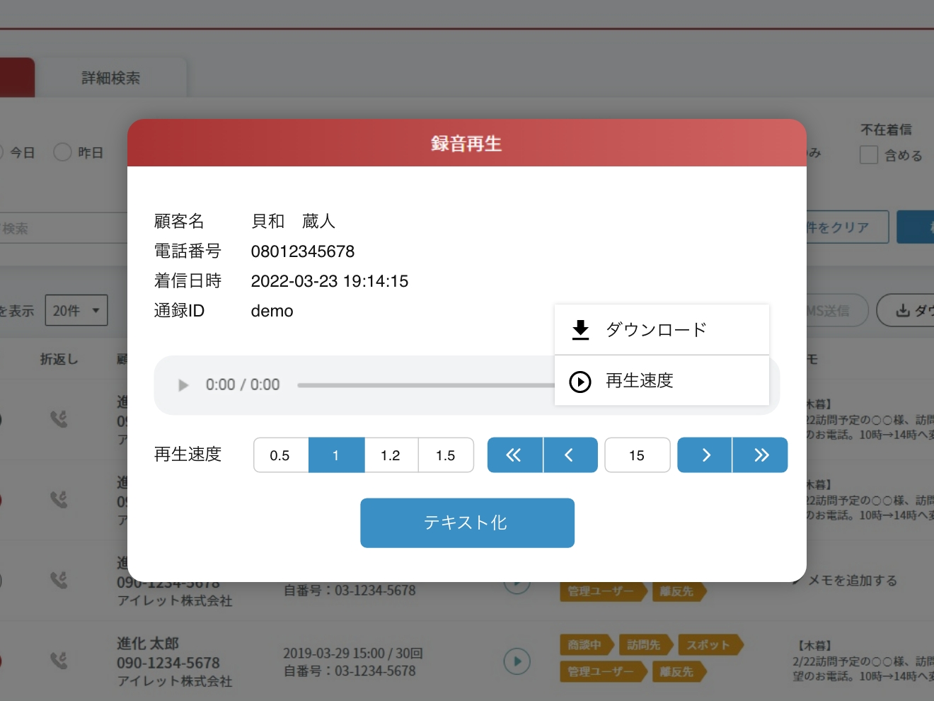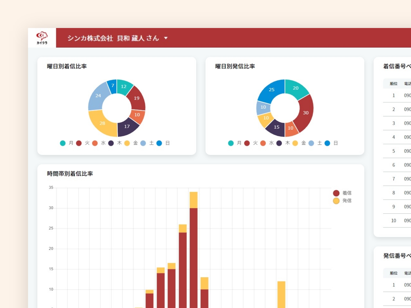 着信時に即座にユーザー情報を画面上で確認できます。これにより、電話対応が大幅に効率化され、通話内容も簡単に録音できるため、何か聞き逃しても後から確認が可能です。