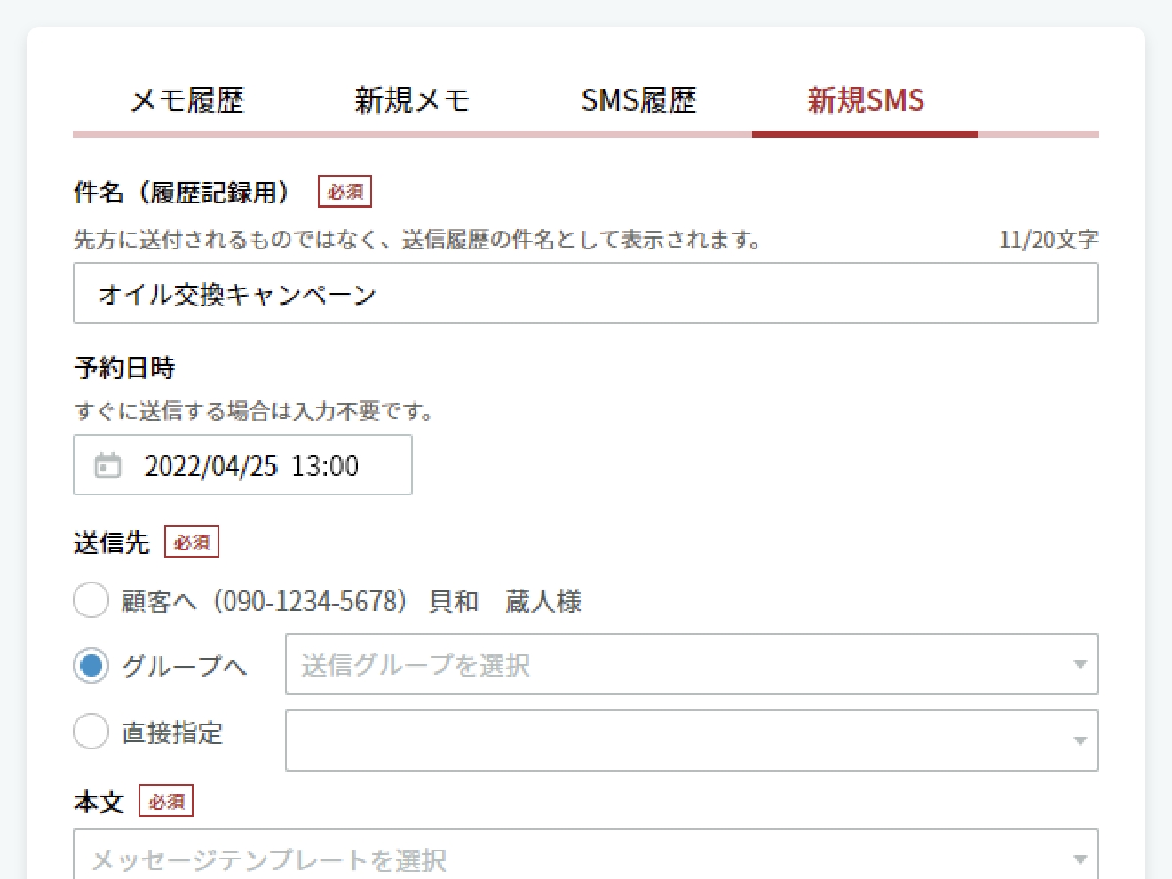 | 海外宛SMS対応 | — | 一斉送信 | |
