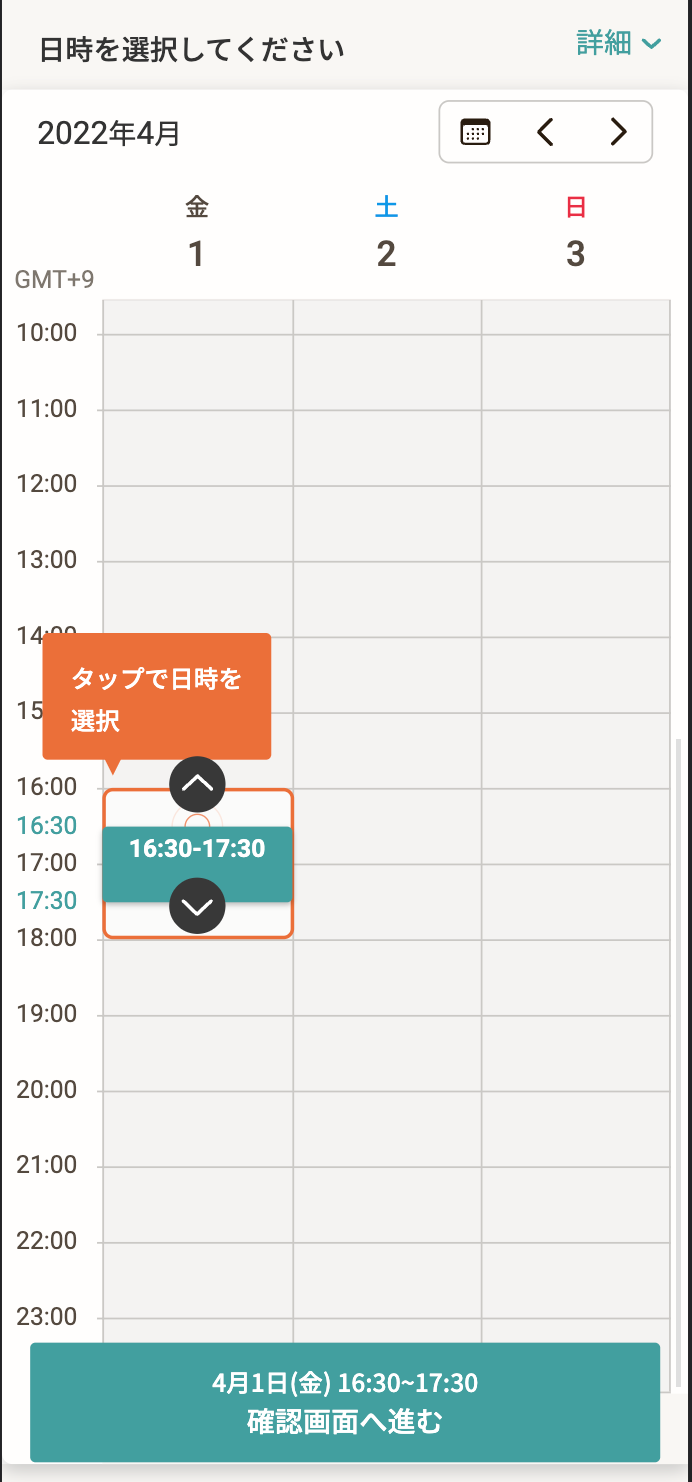 シンプルでわかりやすい調整画面。カレンダー型で選択しやすく、相手に負担をかけません。