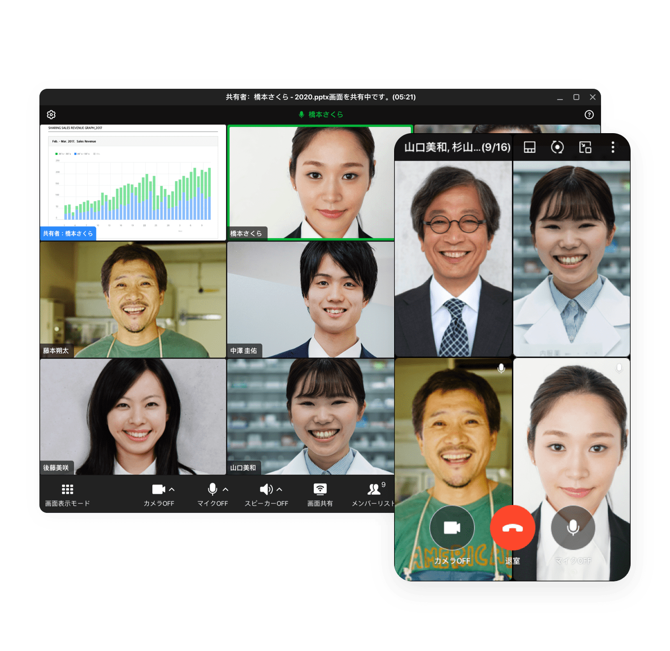 ユーザー数無制限 ストレージ1TB フリープランの全機能と以下を利用可能 : 音声/ビデオ通話/画面共有(200人まで)、管理者機能、カスタマーサポート/SLA保証