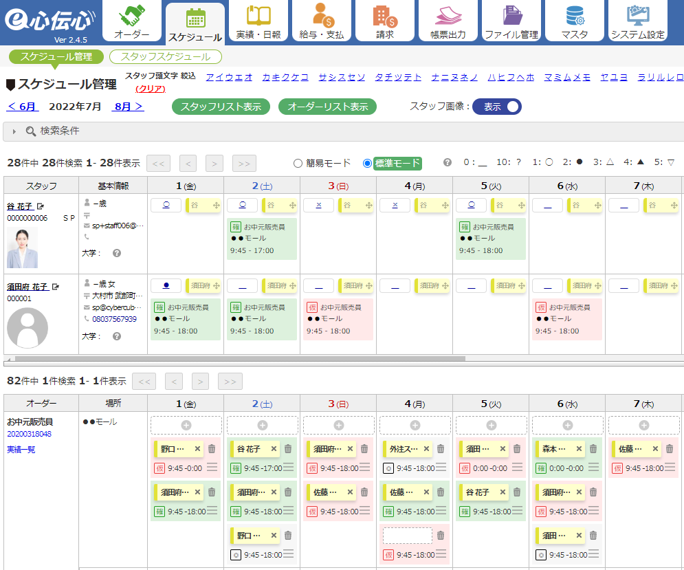 【短期・単発専用】 人材派遣管理システム e心伝心