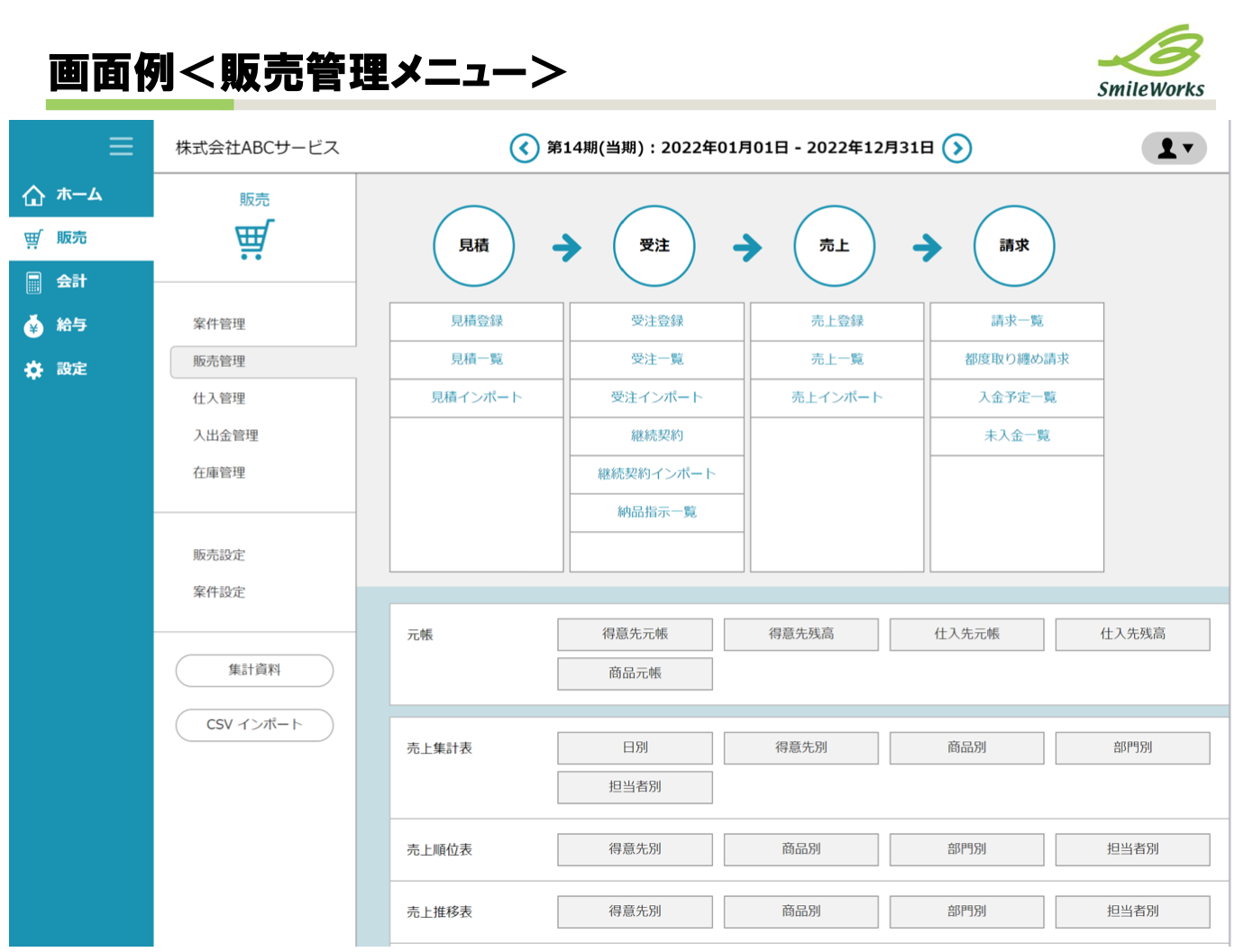 クラウドERPシステム「スマイルワークス」の機能/仕様