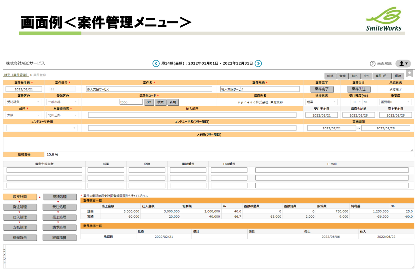 クラウドERPシステム「スマイルワークス」の画面/UI