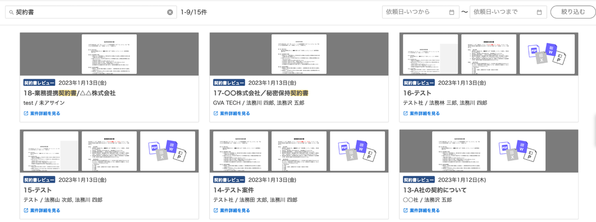 条文検索機能により、過去の契約書や条文を横断的に検索して活用できるので、類似案件をベースにスピーディなドラフト作成が可能です。