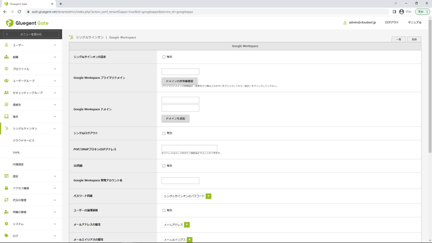 SSO連携対象システムとの接続設定を管理コンソールから 簡単に設定るすことができます。