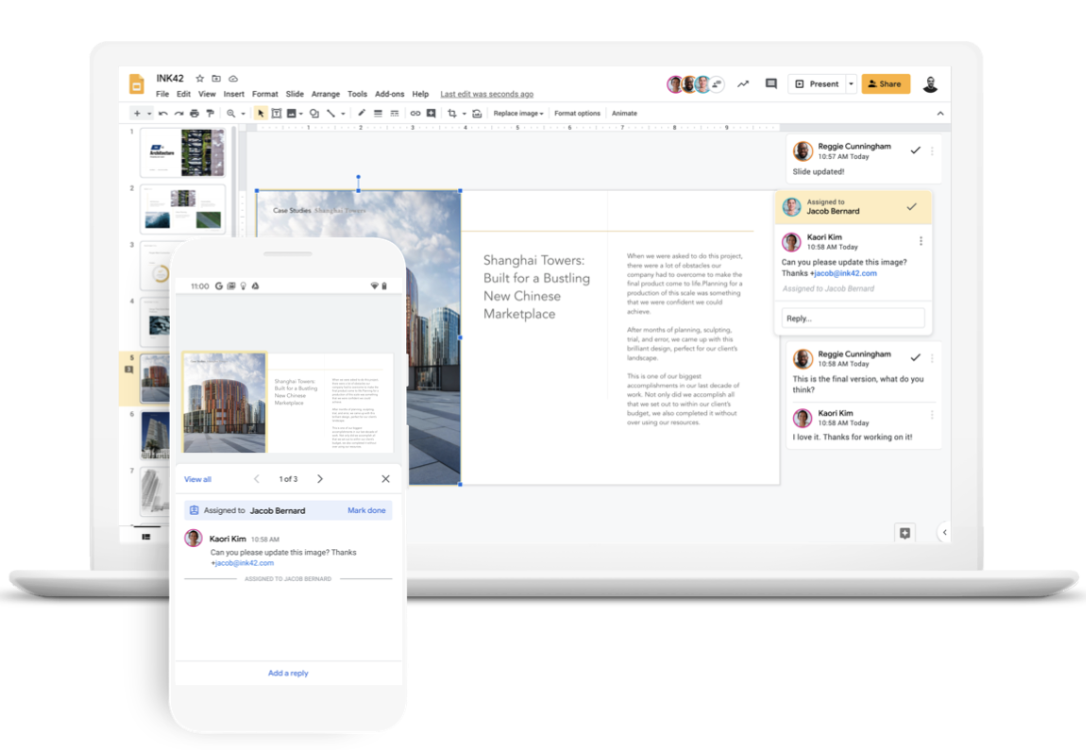 常に最新のツールで、どのデバイスからでもリアルタイムに共同作業ができます。